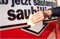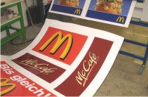 Bedruckte Vinyl Folien (weiche, 75mic schwere, glänzende 5-Jahres Folie) sind Basis von Verklebungen auf Schaufenstern, Planen, Platten, etc. Auf Wunsch mit Schutzlaminat und/oder Konturschnitt - natürlich in jeder Auflage (ab 1 m²). Dank klarem, permanenten Lösemittelkleber für mittel- und langfristige Außenanwendungen einsetzbar.